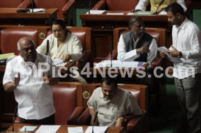 Photo Caption : Minister Ramesh Kumar addressing during the question hour at the Budget Session at Vidhan Soudha, in Bengaluru on Thursday 16th March 2017