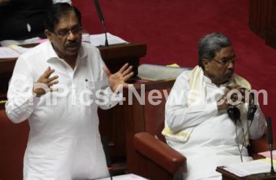 Photo Caption : Home Minister Dr G Parameshwar addressing the Council Session at Vidhan Soudha in the presence of CM Siddaramaiah, in Bengaluru on Thursday 16th March 2017