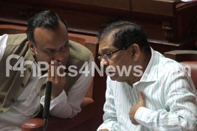 Photo Caption : Home Minister Dr G Parameshwara and Minister Priyanka Kharge seen during Council Session at Vidhana Soudha, in Bengaluru on Monday 20th March 2017