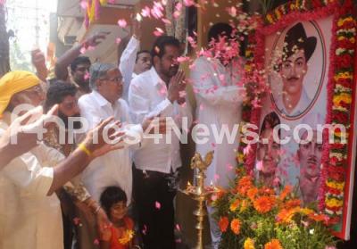 Photo Caption : MLA Suresh Kumar with members of Gandhi Kamraj Smaraka Trust floral tribute to the portraits of Bhagat Singh, Rajguru and Sukhdev on their 86th death anniversary at Prakashnagar, in Bengaluru on Thursday 23rd March 2017