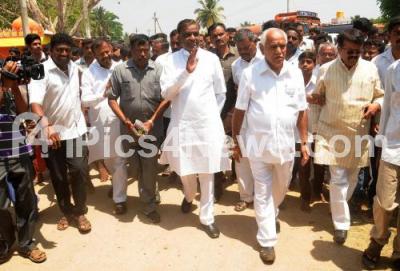 Photo Caption : BS Yeddyurappa seen launched door to door campaign for BJP Candidate V Srinivas Prasad for the By Elections of Nanjangud constituency, on Saturday 25th March 2017
