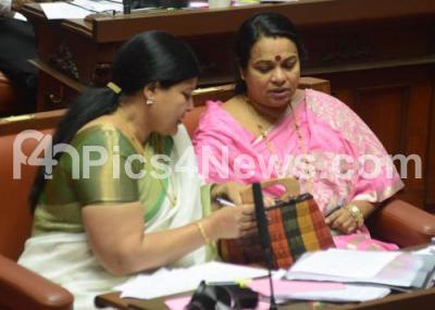 Photo Caption : Minister Umashree seen with MLC Jayamala during the Council Session at Vidhan Soudha, in Bengaluru on Monday 27th March 2017