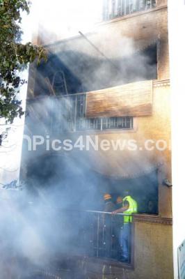 Photo Caption : Two persons including a 35 year old moulvi of a madrasa were charred to death while hundreds of people escaped narrowly when a fire broke out in a four storey building due to suspected electric short circuit in a furniture unit in the same building at Vinayaka Nagar on Mysuru road , firemen were in pressed into action and the charred bodies were removed from the debris and the fire was bought into control, in Bengaluru on Friday 31st March 2017