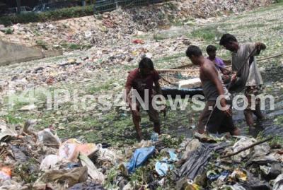Photo Caption : BBMP contract workers seen cleaning the garbage filled Ulsoor Lake, in Bengaluru on Tuesday 4th April 2017