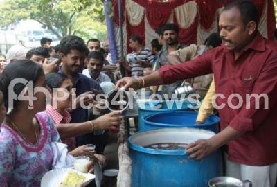 Photo Caption : Devotees distributing Panaka on the occasion of Sri Ramanavami Festival at Sheshadripuram, in Bengaluru on Wednesday 5th April 2017