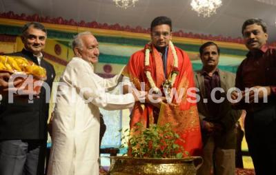 Photo Caption : Yaduveer Krishnadatta Chamaraja Wadiyar being felicitated by Manu Baligar, RK Dutta, DGP and others during the inauguration of the 79th Sri Ramanavami celebrations and National Music Festival at old Fort High School, in Bengaluru on Wednesday 5th April 2017
