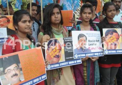 NSUI members staged a protest against the racial comments of BJP leader Tarun Vijay at Anand Rao Circle, in Bengaluru on Saturday 8th April 2017