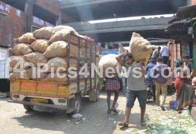 Photo Caption : Vegetables being transported by mini vans and tempo at KR Market, due to ongoing nationwide lorry strike, in Bengaluru on Saturday 8th April 2017