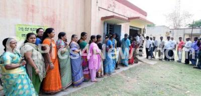 People cast their votes under tight security during Nanjangud By Election in Nanjangud on Sunday 9th April 2017