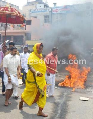 Photo Caption : Karaga bearer seen arriving to attend a Pooja on the occasion of Bangalore Karaga Festival, in Bengaluru on Tuesday 11th April 2017