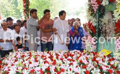 Photo Caption : Shiva Rajkumar, Ragavendra Rajkumar, Puneet Rajkumar and Rajkumar fans offering floral tribute to Senior Kannada Famous Actor Dr Rajkumar Samadi during his 11th death anniversary at Kanteerva Studio, in Bengaluru on Wednesday 12th April 2017