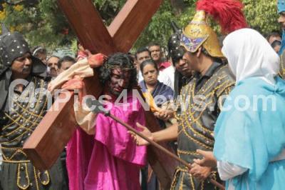Christian devotees enact scenes from the crucifixion of Jesus Christ on the Eve of Good Friday, at Our Lady of Lourdes Church at Ulsoor, in Bengaluru on Friday 14th April 2017