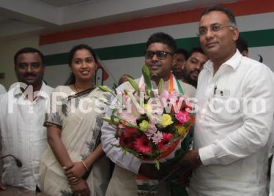 Dr Niranthara Ganesh, Grand Nephew of SM Krishna with other doctors joined the Congress Party in the presence of Dinesh Gundu Rao, Working President at KPCC, in Bengaluru on Wednesday 19th April 2017