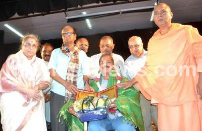 Photo Caption : Sri Sri Veerabhadrachannamalla Swamiji with Prof Chandrshekhar Patil, Umadevi M Kalburgi and others presented Dr MM Kalburgi Pragathipura Chintaka Award to Hulikal Nataraj at Nayana, in Bengaluru on Thursday 20th April 2017