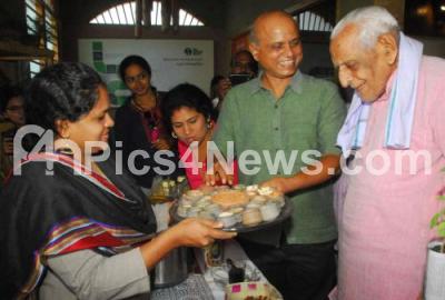 Photo Caption : HS Doreswamy, Freedom Fighter with Shwetha Prasad, Actor, HR Jayaram and others inaugurated the Earth Day 2017 and Siridhanya Mela on the occasion of 10th year celebration of The Green Path at The Green Path, Malleswaram, in Bengaluru on Saturday 22nd April 2017