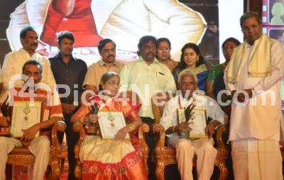 Event Description : CM Siddaramaiah with Minister KJ George presented the Annual Film Awards 2016 during a program at Ambedkar Bhavan, in Bengaluru on Monday 24th April 2017