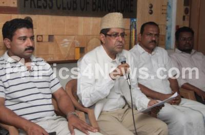 Photo Caption : CK Subbair, National Convener Muslim Youth League with Siraj Ibrahim Sait, National Secretary, Indian Union Muslim League, Naushad, Chairman Reception Committee National Delegate Conference and others addressing a press conference Muslim Youth League National Delegates meet to be held on 27th April 2017, the press conference was held Press Club, in Bengaluru on Tuesday 25th April 2017