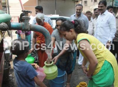 Photo Caption : Dinesh Gundu Rao seen inspecting the water problems being faced by the residents of Malleswaram during his visit, in Bengaluru on Tuesday 25th April 2017