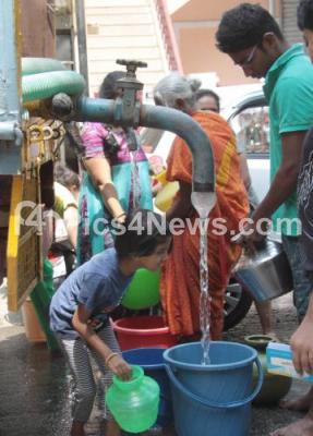 Photo Caption : People standing in long queues to fill water in Malleswaram, in Bengaluru on Tuesday 25th April 2017