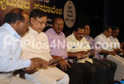 Photo Caption : KT Srikantegowda, MLC with Marithippegowda, Deputy Chairman for Council, MLA Chowda Reddy and others seen at the State Level Conference of Government Degree Colleges Guest Lecturers at Ambedkar Bhavan, organised by Government Degree Colleges Guest Lecturers Association, in Bengaluru on Thursday 27th April 2017