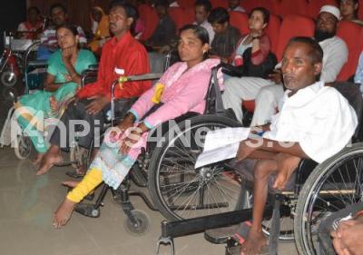 Photo Caption : Disabled people seen at the Seminar on Employment of Disabled and their Life at Bharath Scouts and Guides, organised by Karnataka State Handicapped and Caregivers Federation in Bengaluru on Thursday 27th April 2017