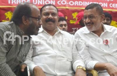 Photo Caption : MZ Ali, National Secretary, TUCC with Vasathi Kumar, General Secretary, Karnataka Soap Factory and GR Shivashankar, National General Secretary, TUCC at the World Labor Day celebrations organized by Trade Union Co Ordination Centre at NGO Hall, in Bengaluru on Monday 1st May 2017