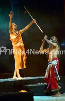 Artistes performing drama of “Advyta, Anusandanam” of Sri Shankarathmanubhava Darshana organized by Simha Bhoomi at Ravindra Kalakshetra, in Bengaluru on Monday 1st May 2017
