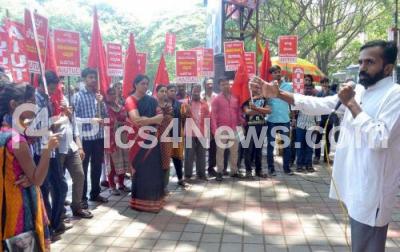 Photo Caption : Members of AIUTUC partake in World Labor Day rally at SBM Circle, in Bengaluru on Monday 1st May 2017