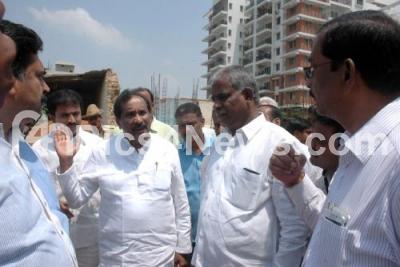 KJ George Minister for BD and TP with officials inspecting the Hennur Flyover Work progress, in Bengaluru on Friday 5th May 2017