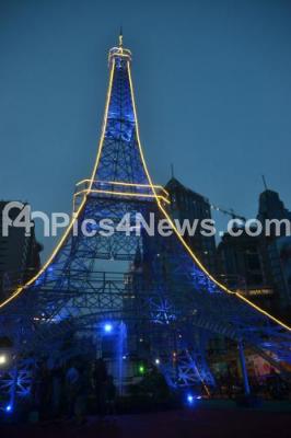 Photo Caption : A mammoth replica of iconic Eiffel Tower being displayed at the National Consumer Fair at St Josephs Indian High School, in Bengaluru on Saturday 6th May 2017