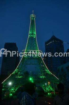 Photo Caption : A mammoth replica of iconic Eiffel Tower being displayed at the National Consumer Fair at St Josephs Indian High School, in Bengaluru on Saturday 6th May 2017