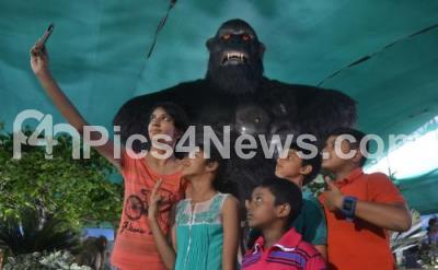 Photo Caption : Children enjoying the 1st ever robotic wild animal show at the National Consumer Fair at St Josephs Indian High School, in Bengaluru on Saturday 6th May 2017