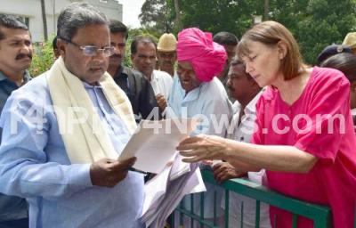 Event Description : CM Siddaramaiah receiving public petitions during Janata Darshan at Home office Krishna, in Bengaluru on Monday 8th May 2017