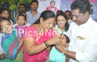 Photo Caption : Mayor G Padmavathi administering immunisation drops to a kid during Indra Dhansuh drive, in Bengaluru on Monday 8th May 2017