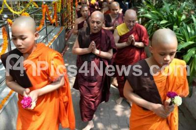 Photo Caption : Buddhist monks offer prayer on the occasion of “Buddha Poornima†at Mahabodhi Society, in Bengaluru on Wednesday 10th May 2017