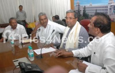 Photo Caption : CM Siddaramaiah with Minister KJ George, Venkatesh, Chairman BDA and others held a review meeting pertaining to Bangalore Development Authority various issues at Krishna, in Bengaluru on Friday 12th May 2017