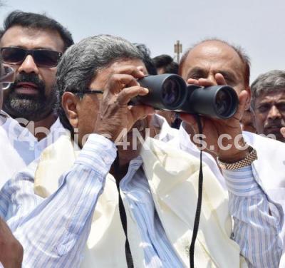 Photo Caption : CM Siddaramaiah with Minister KJ George, MLA NA Haris and other officials inspected the Bellandur Lake, in Bengaluru on Monday 15th May 2017