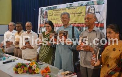 Photo Caption : Girish Karnad with Teesta Setalvad, Dr K Maralasiddappa, Dr Vasundhara Bhupathi and others releasing the book “RSS Antaranga†authored by AK Subbaiah at KEB Engineers Association Hall, in Bengaluru on Monday 15th May 2017