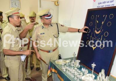 Photo Caption : Hemanth Nimbalkar, Additional Police Commissioner with Dr Boralingaiah, DCP South, seen inspecting the recovered jewels from the accused arrested in a murder case from Tilak Nagar Police limits, in Bengaluru on Tuesday 16th May 2017