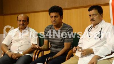 Photo Caption : Actor Shivarajkumar with MS Ramaiah Hospital doctors addressing a press conference about health condition of Parvathamma Rajkumar at MS Ramaiah Hospital, in Bengaluru on Thursday 18th May 2017