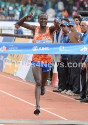 Photo Caption : International Men athlete winner Alex Korio in action in Men Elite 10 K during TCS World 10K 2017