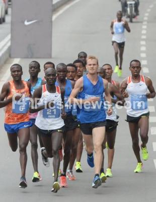 International Men athletes winner Alex Korio, Runner Edwin Kiptoo and Second Runner Stephen Kissa in action in Men Elite 10 K during TCS World 10K 2017, in Bengaluru on Sunday 21st May 2017