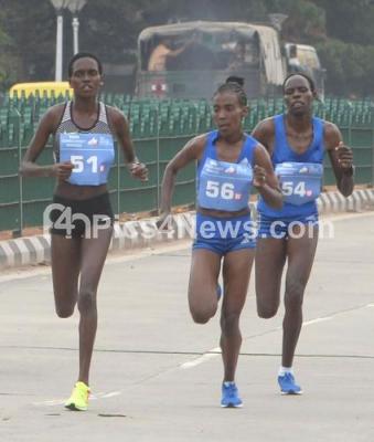 International Women athlete Winner Irene Cheptai, Runner Worknesh Degefa and Second Runner Helah Kiprop in action in Women Elite 10 K during TCS World 10K 2017, in Bengaluru on Sunday 21st May 2017