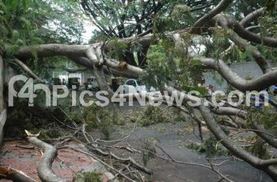 Photo Caption : A huge tree uprooted opposite PRTC School near Mekhri Circle, blocking the road ,due to last night heavy wind and rainfall, in Bengaluru on Sunday 21st May 2017
