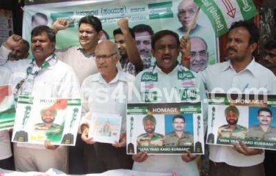 Members of Janata Dal United staged a protest against for non performance of BJP Government in the centre and for not benefiting the Indian Soldiers in the 3 years of BJP government in the center, the protest was held at SBM Circle, in Bengaluru on Friday 26th May 2017