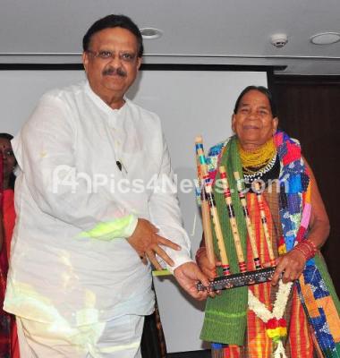 Event Description : Legendary Singer Dr SP Balasubrahmanyam felicitating Padma Shree Sukri Bomma Gowda during the launch of IYDANI a redefine folk tradition of India, in Bengaluru on Saturday 27th May 2017