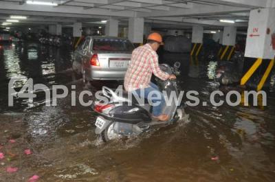 Photo Caption : Water log at K R Market parking area due to last night heavy rainfall, in Bengaluru on Saturday 27th May 2017