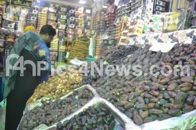 Photo Caption : Muslims seen buying dates at Russel Market in Shivajinagar, as the holy month of Ramadan starts from tomorrow in India, in Bengaluru on Saturday 27th May 2017