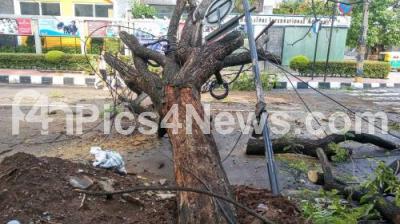 Photo Caption : Tree uprooted at Jayanagar 2nd Stage due to last night heavy rain, in Bengaluru on Sunday 28th May 2017