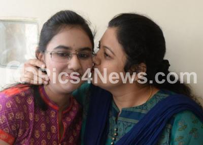 Photo Caption : Rakshitha Ramesh, CET 1st Rank in ISMH, seen celebrating with her mother at her residence, as the CET results 2017 were announced today, in Bengaluru on Tuesday 30th May 2017